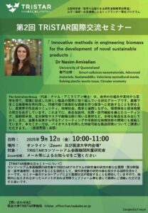 The Amiralian Group(代表:ナシム・アミラリアン博士)は、自然の仕組みや素材から着想を得て、環境に配慮した新しい製品の開発に取り組んでいる研究グループです。農業で生じる廃棄物を再利用し、持続可能で商業的な価値を持つ資源へと変換することを使命とし、産業界や先住民コミュニティ、地域社会、農家と連携しながら、環境保全と経済発展の両立をめざしています。これまでに、食品包装材、抗菌・防汚機能を備えたコーティング、医療用手袋、生分解性マスクや創傷治療に用いる素材など、多様な製品を生み出しており、また、金属を腐食から守るナノコーティングや革新的な触媒技術の開発にも挑戦しています。本セミナーでは、バイオマスを利用した持続可能な製品開発についてご講演いただきます。 (使用言語:英語)