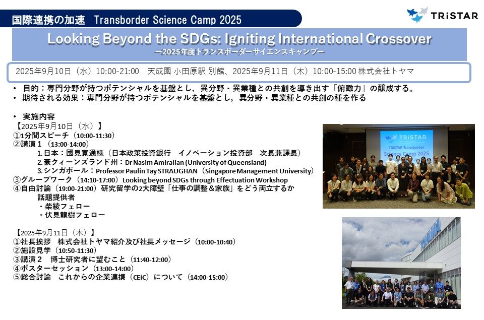 9月10日(水)~11日(木)の2日間にわたり、TRiSTARフェローおよびプリフェローを対象としたサイエンスキャンプを開催しました。