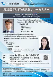 TRiSTAR Co-Creation Relay Seminar will be held on the following date and time, with the aim of creating new developments, such as cross-disciplinary fusion or industry-academia collaboration, in TRiSTAR Fellows’ research. This seminar series is open to organizations outside the TRiSTAR Consortium, so we hope that many people from other organizations and fields will participate.